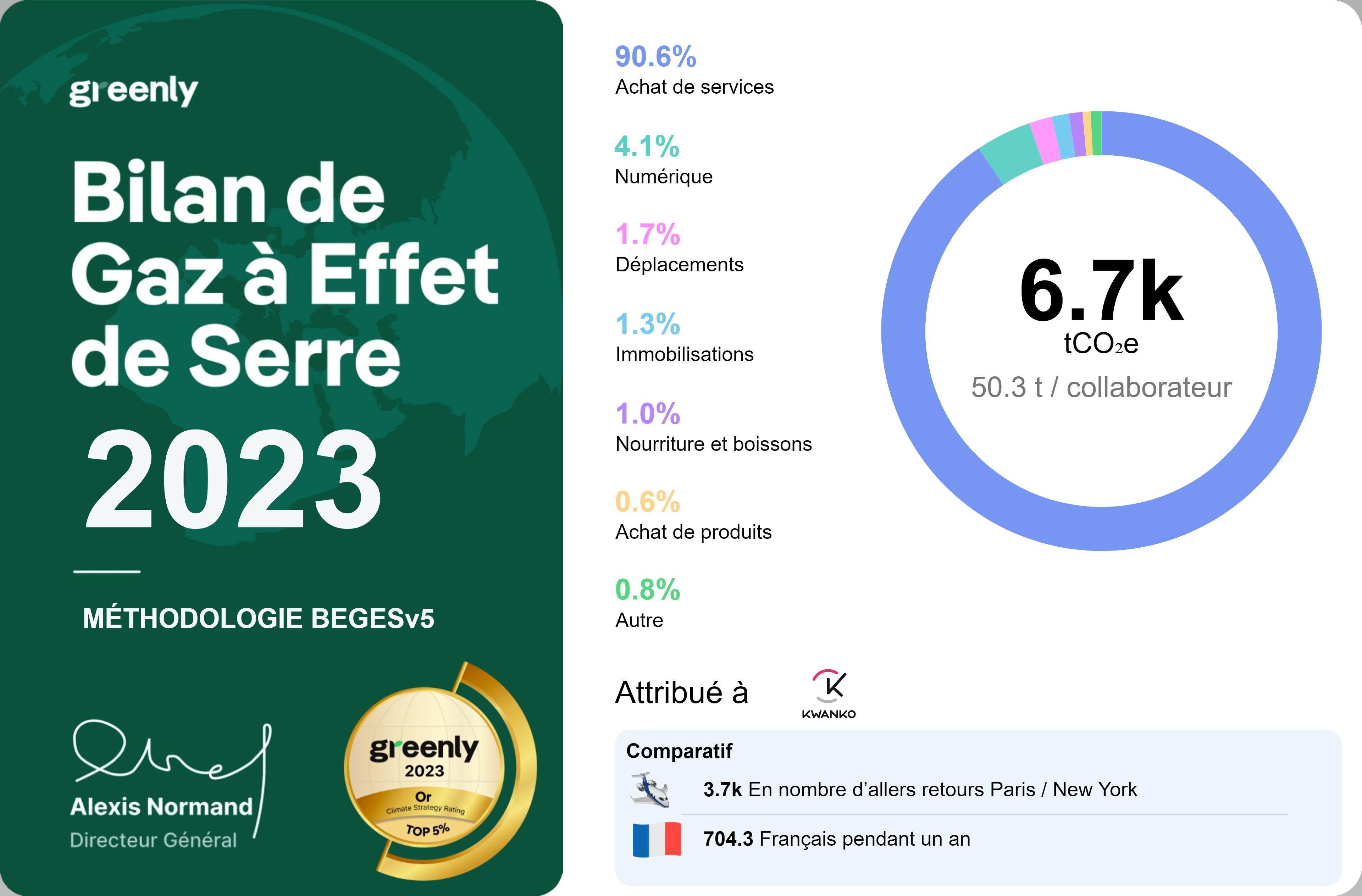 En conclusion, la Médaille d’Or obtenue par Kwanko pour son bilan d’émissions de gaz à effet de serre témoigne d’un engagement fort en faveur de la durabilité et de la responsabilité environnementale de notre entreprise. Cette distinction représente non seulement une reconnaissance de nos efforts passés, mais aussi un encouragement à aller plus loin dans la réduction de notre empreinte carbone. Grâce à l’implication de l’ensemble de nos équipes, nous avons défini des actions concrètes pour poursuivre sur cette voie. Nous sommes déterminés à continuer à mobiliser l’ensemble de nos parties prenantes dans une démarche respectueuse de l’environnement. Parce que chaque action compte, Kwanko entend jouer un rôle de premier plan dans la lutte contre le changement climatique, et ce, à long terme.